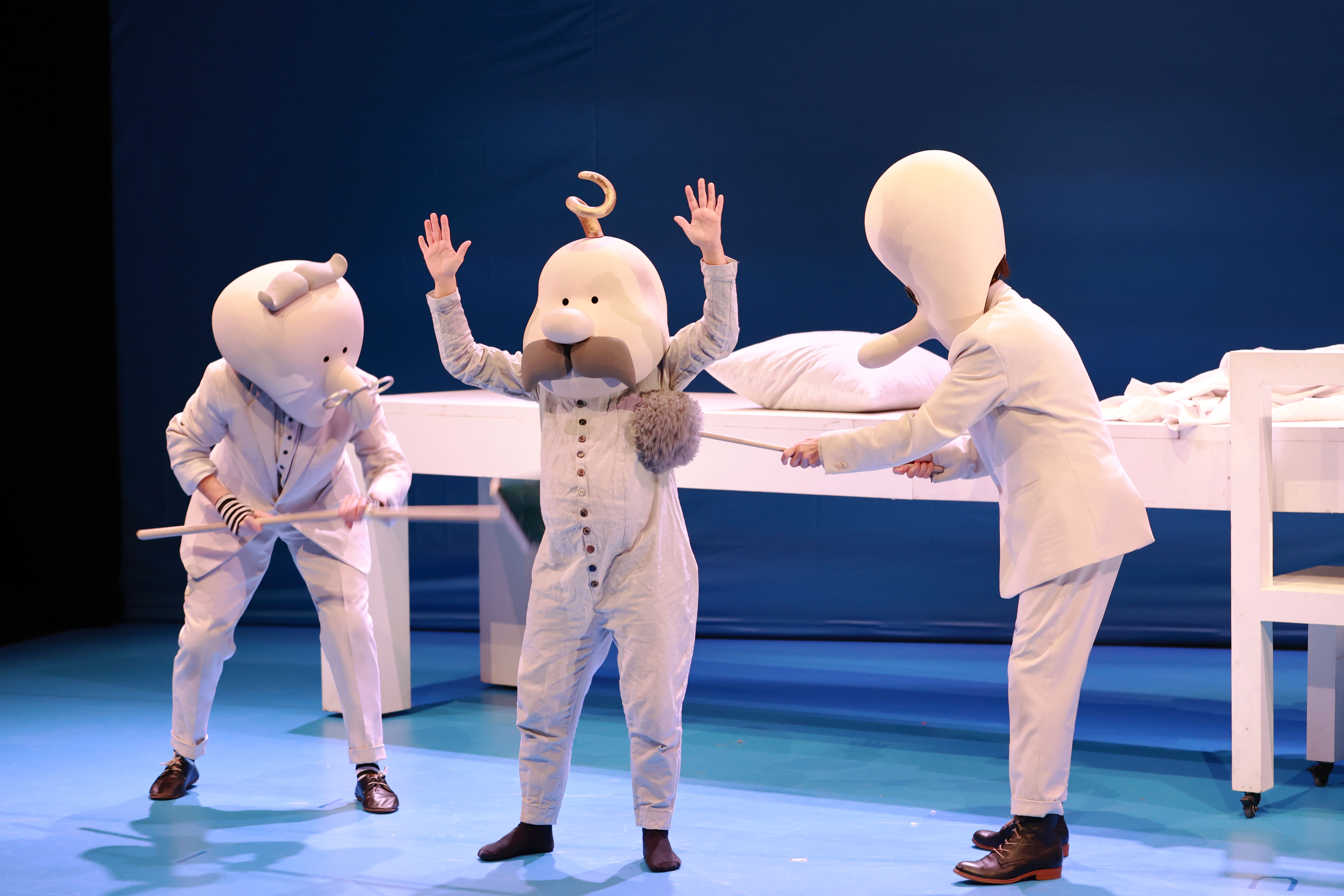 Los tres sirvientes están acostumbrados a cumplir con todo lo que dice el señor Bo. Llevan toda la vida a sus órdenes, desde que era un niño. A veces se imaginan lo que podía ser el mundo si ellos fueran los amos, lo que es tener el poder en sus propias manos y no depender de nadie más. También juegan asumiendo el rol del señor mientras los demás se hacen pasar por sus servidores. Cuando el señor Bo era niño, los sirvientes tuvieron la oportunidad de decir ¡No!, pero no lo hicieron, y Bo ha ejercido la hegemonía durante años. Su relación es muy servicial, de dependencia, pero en un momento dado surge una nueva oportunidad de decir ¡No!