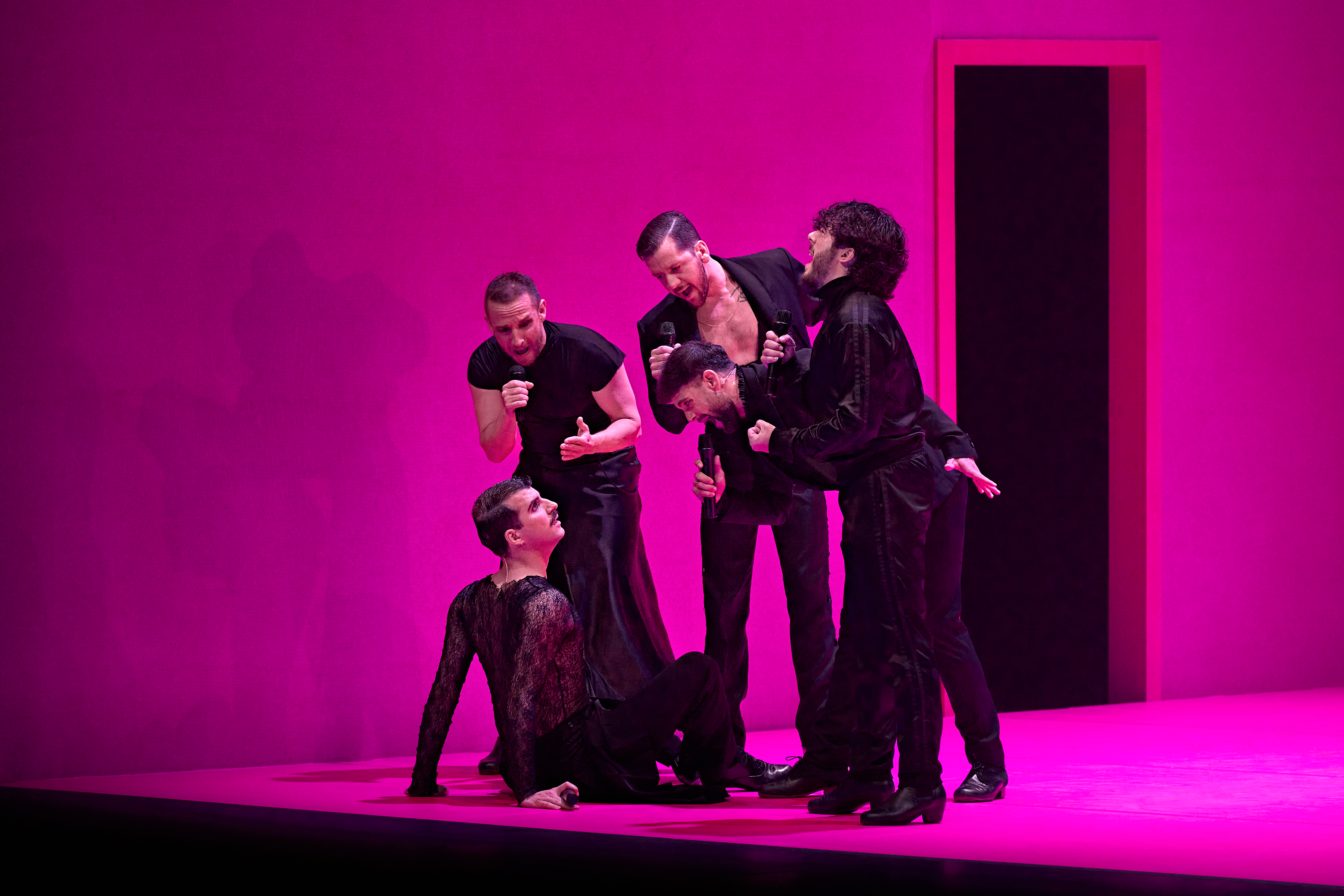 Una docena de artistas en escena son los encargados de guiarnos por este pasaje coreográfico, con carácter de copla, que apunta a diferentes atmósferas: el deseo, la fantasía, la provocación… necesidades que emanan de nuestra propia intimidad, de nuestro cuerpo, y hacen sostener nuestra energía vital.